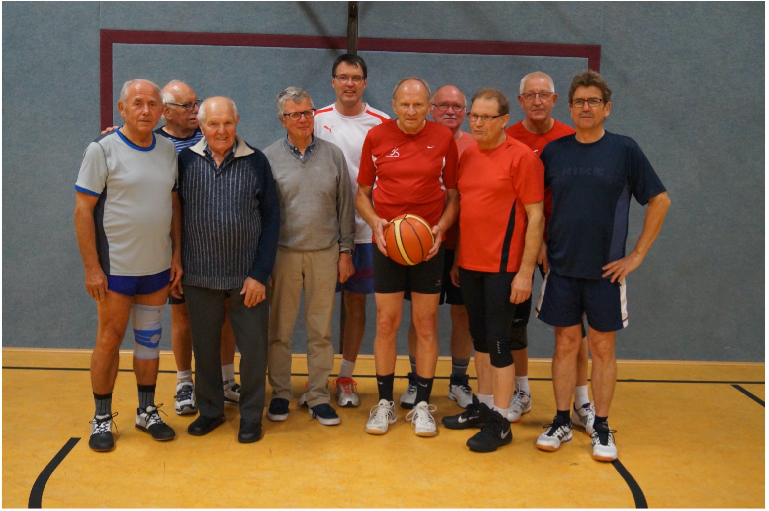 Wir sind eine Truppe von 15 junggebliebenen Männern im Alter von 50 – 85 Jahren, die – außerhalb der Pandemiezeit – Gymnastik betreiben und Basketball spielen.