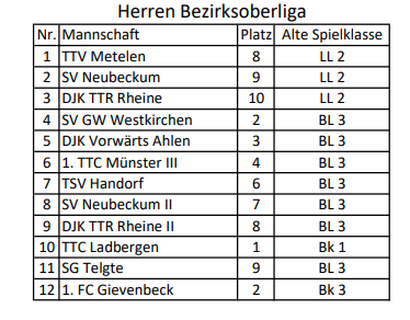 Unserem vergleichsweise jungen Team aus Vorwärts-Eigengewächsen um Routinier Steinle stehen in der neuen Saison voraussichtlich gleich drei Teams gegenüber, die in der letzten Saison noch in der Landesliga aufschlugen, darunter auch Lokalrivale Neubeckum. Wie stark die Liga tatsächlich sein wird, bleibt abzuwarten. Es ist kein Saisonziel ausgeschrieben. Wer ein Meisterschaftsspiel sehen möchte ist herzlich eingeladen, zu einem Heimspieltag vorbeizukommen.
