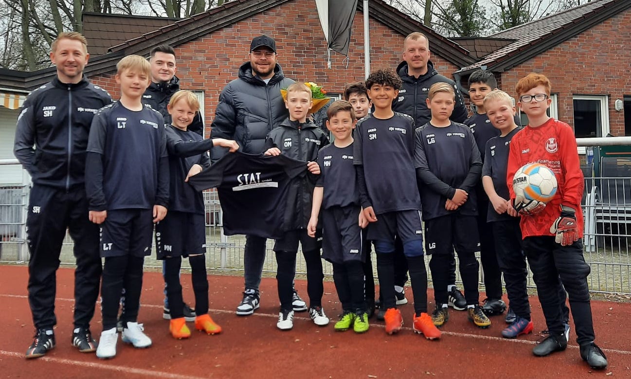 Am Samstag den 18.03.23 trat die E-1 Jugend zuhause gegen den Tabellenführer Beckum I an. Vorab konnten sich die Jungs von Dominik Pollmeier in den neuen Trainingsoutfits und Regenjacken warm machen, denn diese wurden von der Firma STAT GmbH Schweißtechnik gesponsert. Die Kinder bedankten sich vor dem Spiel beim Sponsor. Er wurde zum Heimspiel eingeladen.