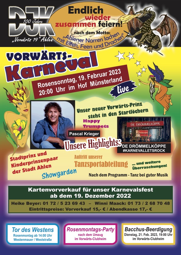 Vorwärts Ahlen ist ein Familienverein. Das merkt man bei der DJK spätestens dann, wenn die jährliche Jubilarsehrung ansteht. In diesem Jahr waren gleich zwei Mitglieder dabei, die 60 Jahre bei Vorwärts aktiv sind. Theo Leifeld und Karl Niermann aus der Fußballabteilung sind sechs Jahrzehnten im Verein, Manni Hagedorn ist 50 Jahre dabei. 40 Jahre bei Vorwärts sind Norberto Bautista, Hildegard Borgschulte, Hildegard Heidfeld, Wolfgang Hoffleit, Edith Leifeld und Dietmar Pawlowski. Ganze 25 Jahre sind Nils Beckervordersandforth, Raimund Bühler, Matthias Doeth, Bernd Overmann, Andreas Pälmke, Bernd Schnafel und Tobias Schulte im Verein.