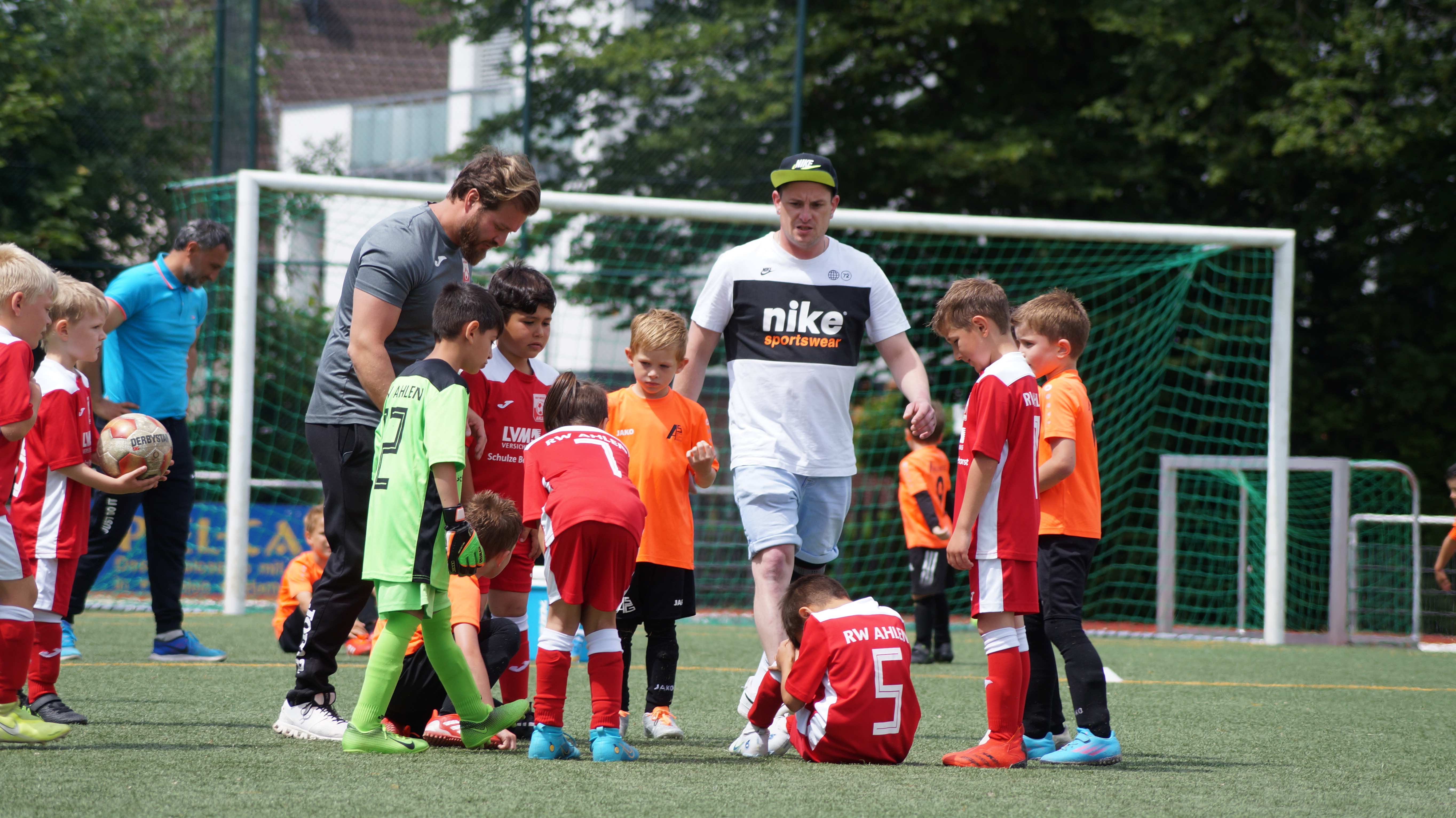 Am vergangenen Sonntag (07.08.2022) haben einige unserer jüngsten Kicker ihre Feuertaufe bestanden: Mit 10 Spielern reisten wir samt großer Karawane nach Drensteinfurt, um das erste Turnier gemeinsam zu erleben. Nach anfänglichen Orientierungsschwierigkeiten und großer Nervosität gelang es den Spielern zunehmend mehr Sicherheit in die Aktionen zu bringen und auch einige Erfolgserlebnisse zu feiern. Dazu hatten wir bei fünf Partien gegen SV Drensteinfurt, TuS Ascheberg, SV Herbern, JSG Nord/Süd/Cap und DJK GW Albersloh die Möglichkeit. Da die Minis zwar eifrig die Tore zählen (und zum Teil auch lautstark während des Spiels skandieren), am Ende aber die Ergebnisse nicht ausgewertet werden, wurden alle Spieler Sieger und mit Pokalen ausgezeichnet. Neben den Toren, den Siegen und Niederlagen nehmen wir ganz viel Motivation für die nächsten Trainingseinheiten mit (auch wenn wir entgegen der Erwartung mancher Spieler nicht im Fernsehen zu sehen waren).