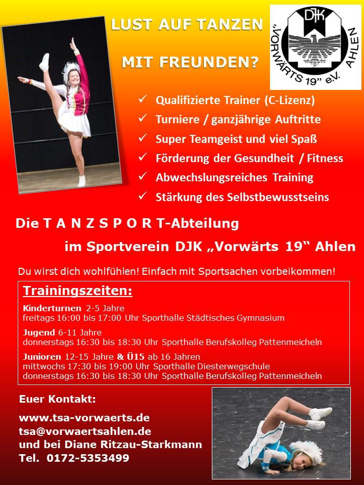 Bei Rückfragen sind wir gern für euch da: Abteilungsleiterin Tanzsport Diane Ritzau-Starkmann Tel. 0172-5353499